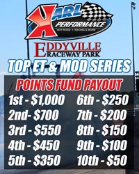 New Top and Mod Points Series Sponsor for 2017 ERP is pleased to announce Karl Performance as the points series sponsor for our Top and Mod classes for 2017. The payouts for these 2 classes to be paid out at the 2017 awards banquet are listed below. Thanks to Karl Performance for this commitment to support the racers at ERP and racers please support Karl Performance whenever you need anything for your race car.